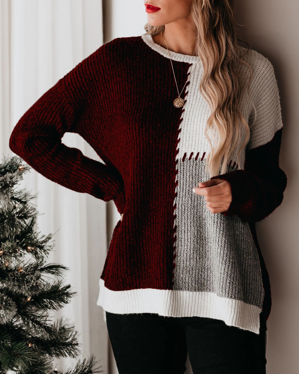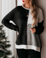 Women’s Autumn Sweater Color Block Long Sleeves